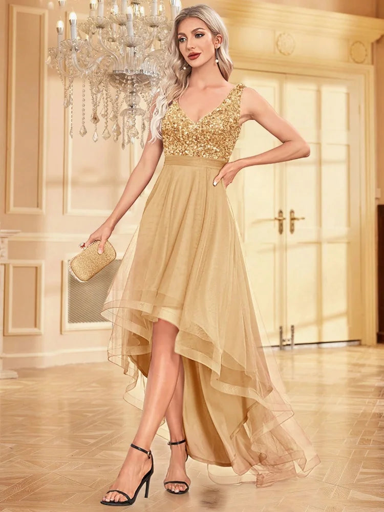 Elegant Women Sleeveless Sequins Floor Length Formal Evening Dresses Luxury V-neck Wedding Party Cocktail Gowns