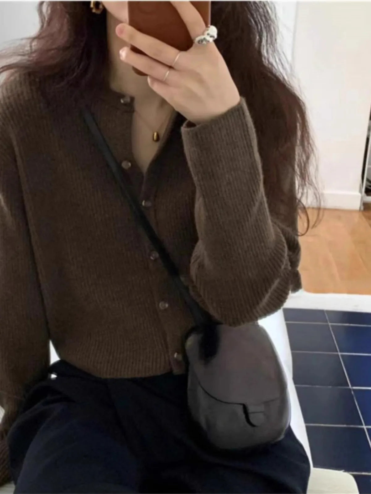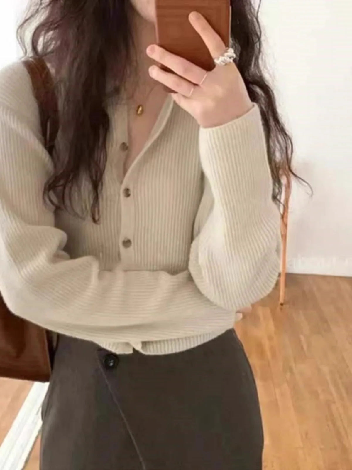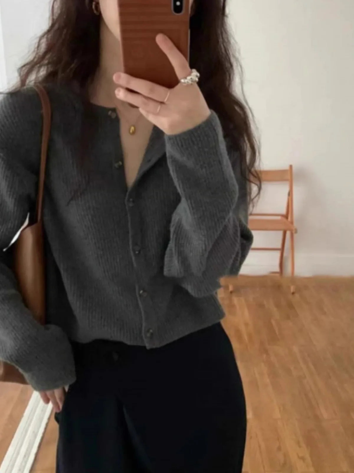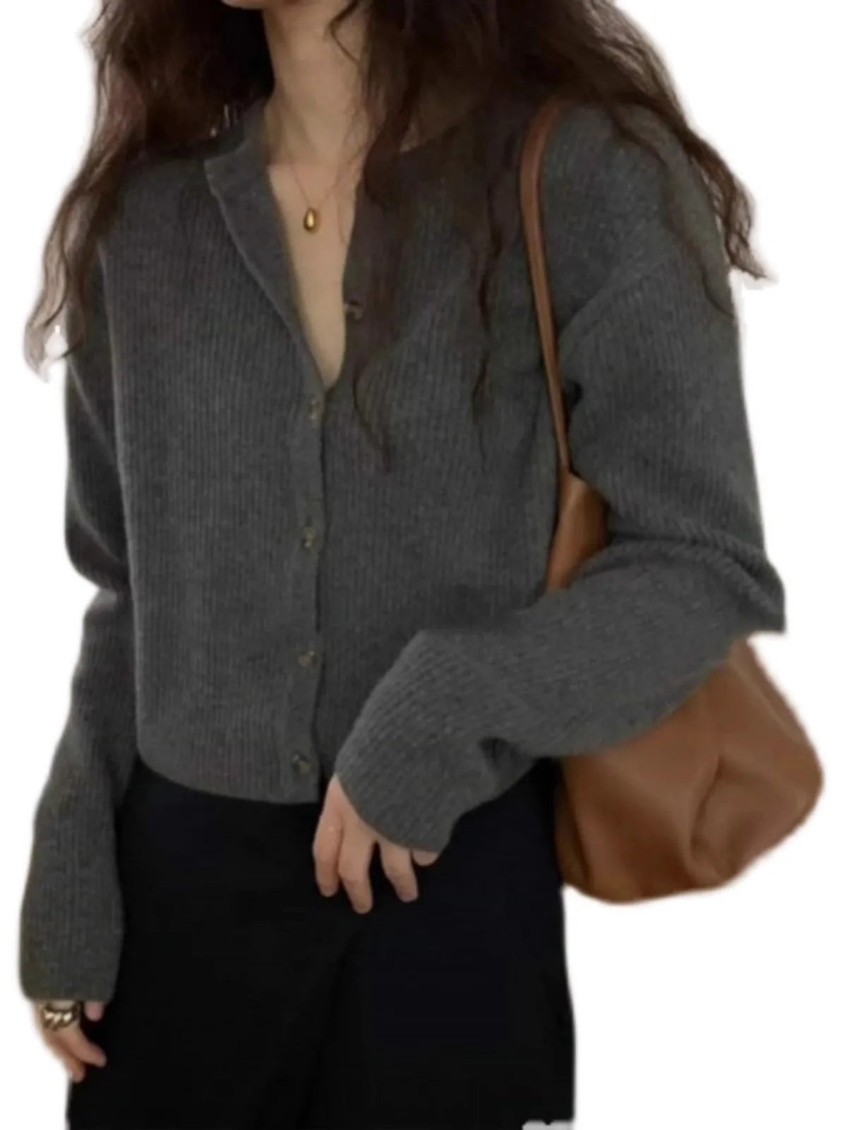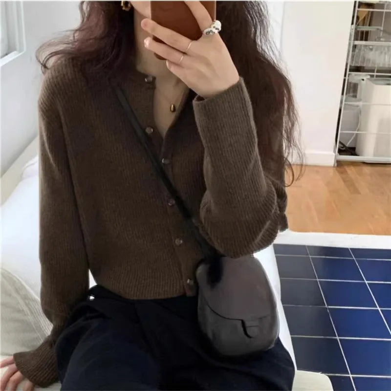 Fashion cashmere knitted cardigan women's sweater Spring and autumn Korean version of gray blouse loose short wool coat