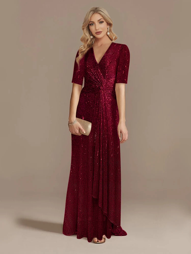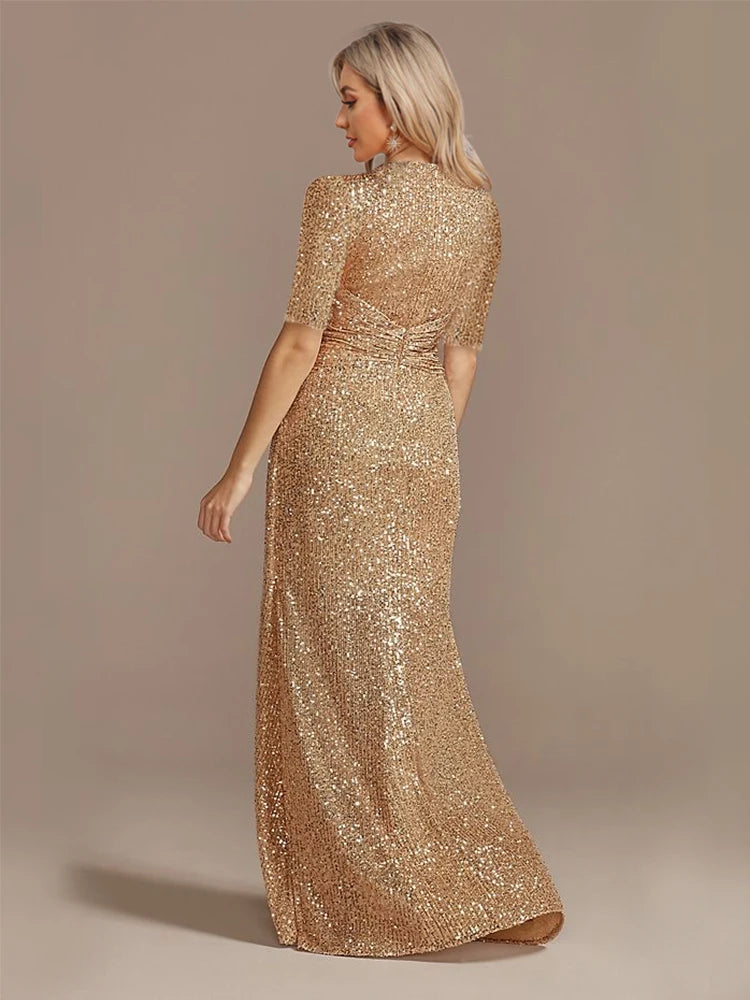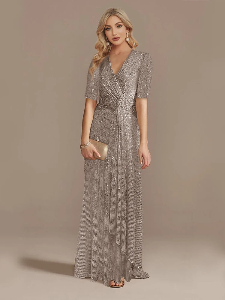Luxury Floor Length V-Neck Evening Dress 2025 Women Elegant Party Maxi Dress Sequin Short Sleeves Prom Cocktail Gowns