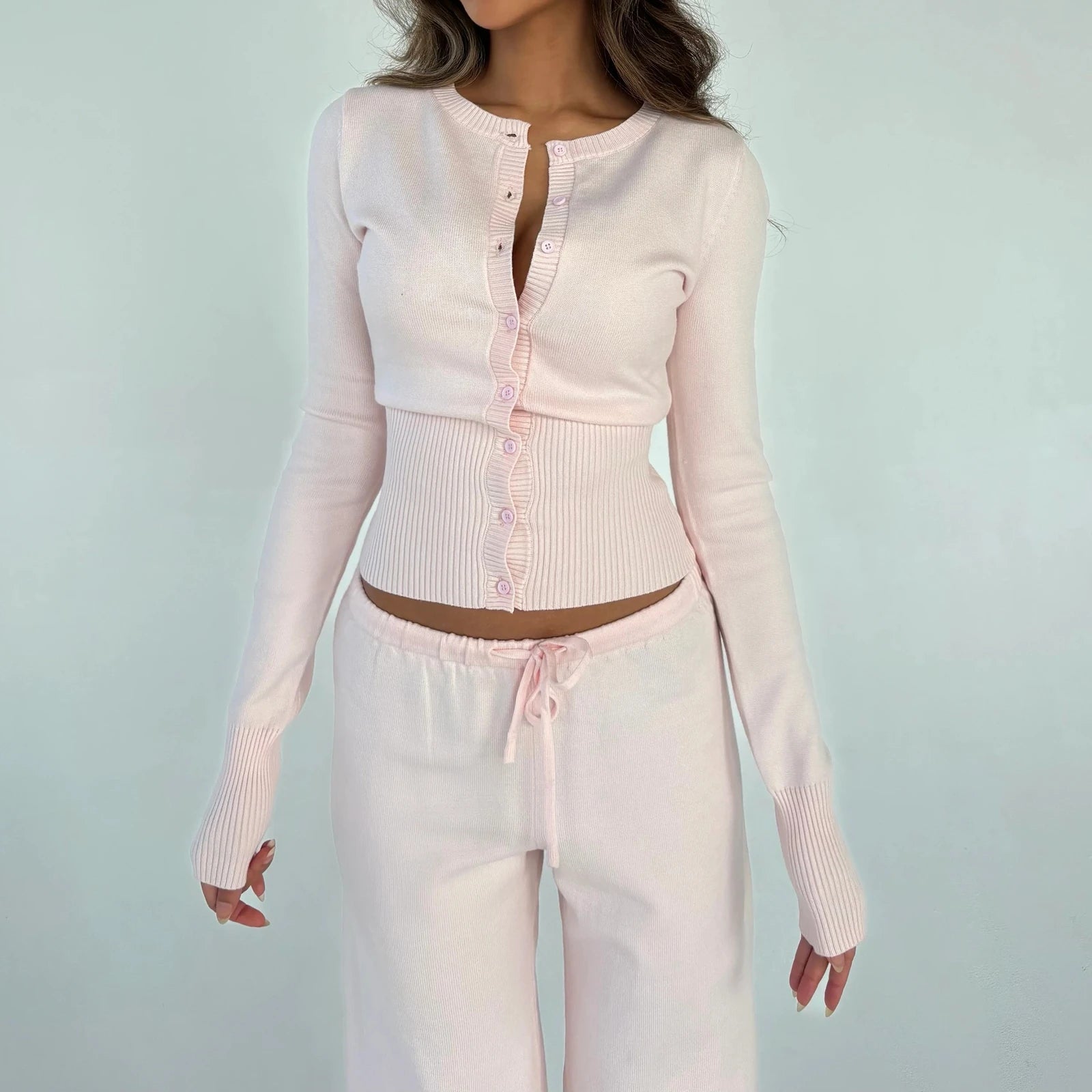 Women Fall Knit Cardigan Solid Long Sleeve Slim Button Down Tops For Autumn Daily Wear Streetwear